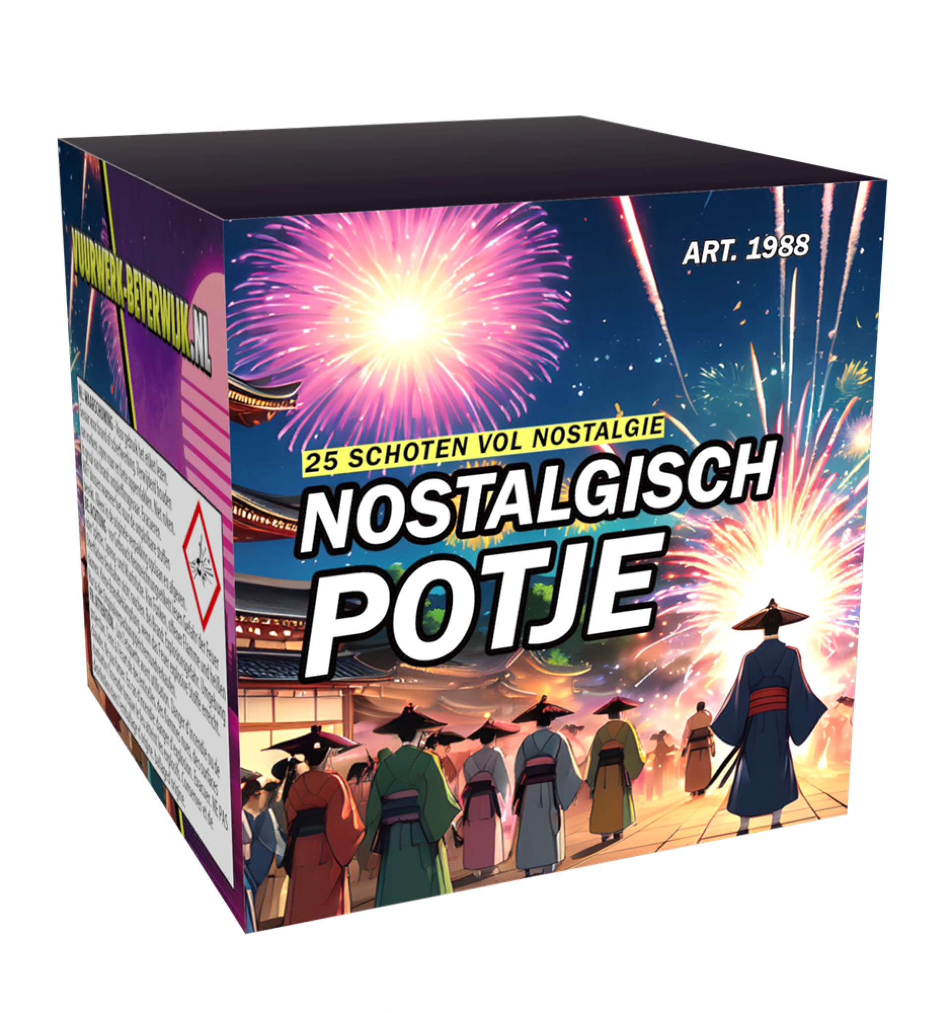 Vroeger (toen vuurwerk nog betaalbaar was) was alles beter ;) Nu blijven wij niet het verleden hangen, maar goede dingen van vroeger terugbrengen kan geen kwaad. Dus nieuw in de collectie: Vuurwerk-Beverwijk's Nostalgisch Potje. Een betaalbare 25 schots cake vol met kleurrijke effecten.